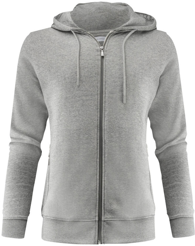 Hooded sweater with full zip and half-moon in neck. Contrast, metal look nano membrane zip at center front and side pockets. Tone in tone drawstrings with rubber bullet point end. Brushed inside. 1x1 ribb ending at sleeves and bottom hem. Oeko- Tex 100 certified.