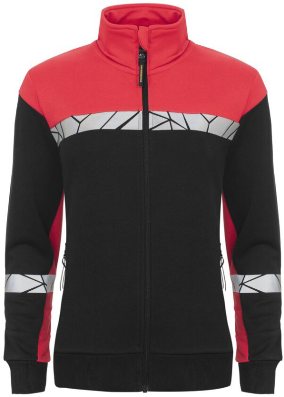 Sweatshirt with full zip at front. Brushed inside for a nice and soft feeling. Pockets at both sides with zip closure. Contrast tape at neck. 2x2 ribbing at cuffs and at the bottom of the sweatshirt. Laundry chip pocket in the inner left side seam.