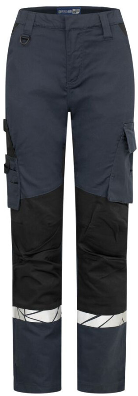 Servicepant with open side- and back pockets. Leg pockets, on the left side one spacious pocket with flap and magnet closure, one internal phonepocket and a bracket for fastening ID-card. On the right side pocket for folding rule and pocket for tools with knife button. Pre-bent knees, stretch fabric in croatch and sewn-in stretch band in the waist for increased comfort. Wider belt loop at the back to prevent pressure from belt. Hidden button at front. Laundry chip pocket in the inner left side seam.