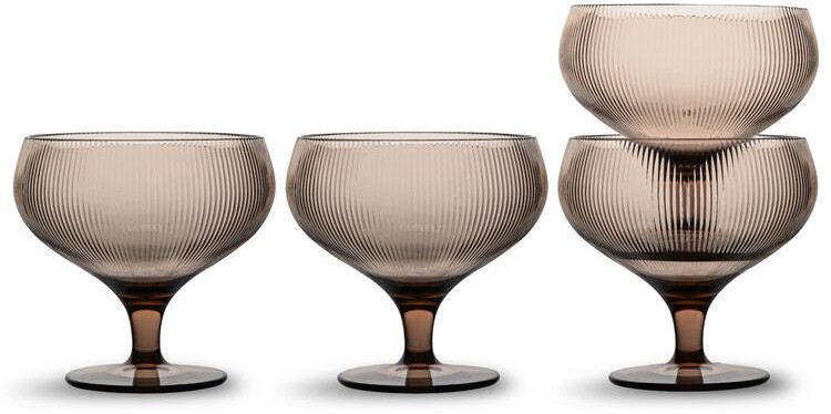 Billi champagne glasses have an elegant shape that clearly reflects the Sagaform style. A clear, rounded bowl with ribbed detailing and a low stem creates a look that’s both refined and easy to use. Made from recycled PET (rPET), they also make a thoughtful gift for someone who already has everything. Sold in a 4-pack. Hand wash recommended to keep them looking their best for longer. Food safe.
