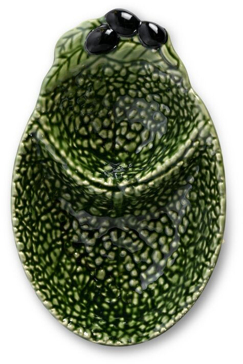 Bowl Olive is shaped like an olive leaf with little black olives on top. A playful detail that instantly elevates your table setting. Perfect for olives, nuts or small snacks. Made of glazed stoneware with a Mediterranean feel that suits both everyday moments and festive occasions. Dishwasher safe and food safe. Delivered in a Byon box. Design Byon Studio.