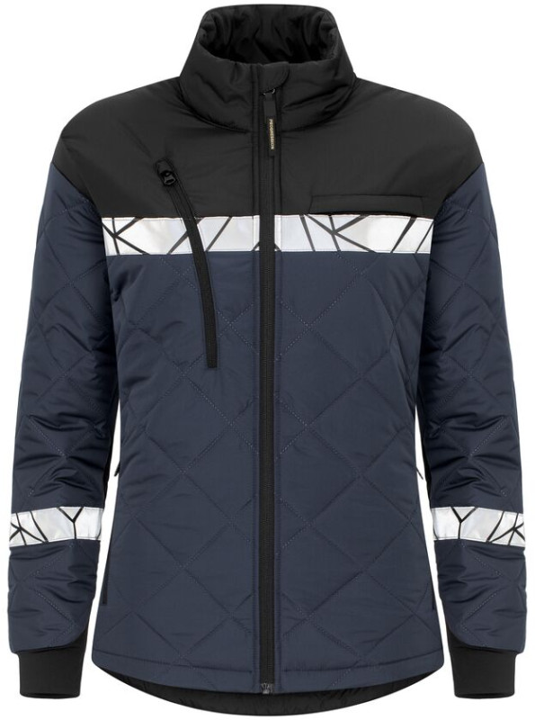 Kurtka z lekkiego, bezszwowego materiału pikowanego w diamentowy wzór. Kieszenie na piersi po obu stronach z zamkiem błyskawicznym, po lewej stronie z wewnętrznym uchwytem do przypięcia identyfikatora. Kieszenie po bokach z zamkiem błyskawicznym, a także otwarte kieszenie wewnętrzne na dokumenty itp. Kieszonka na metkę w wewnętrznej lewej szwie.