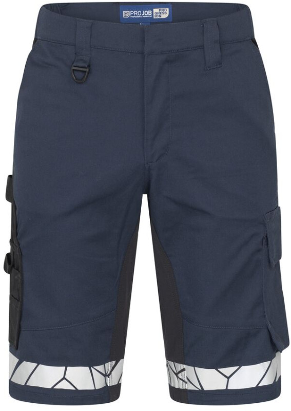 Szorty robocze z otwartymi kieszeniami bocznymi oraz tylnymi o zwiększonej szerokości, lewa strona z klapą i magnetycznym zapięciem. Kieszenie na nogawkach: po lewej stronie jedna przestronna kieszeń z klapą i magnetycznym zamknięciem, jedna wewnętrzna kieszonka na telefon oraz uchwyt do przypięcia identyfikatora. Po prawej stronie kieszeń na miarkę składana oraz kieszeń na narzędzia z guzikiem na nóż. Elastyczna tkanina w kroku oraz wszyty pas elastyczny w talii zapewniają większy komfort. Szeroka szlufka z tyłu, zapobiegająca uciskowi pasa. Ukryty guzik z przodu. Wzmocnienia w kieszeni na miarkę oraz tylnych kieszeniach zwiększają trwałość. Kieszonka na chip do prania w wewnętrznej lewej szwie.