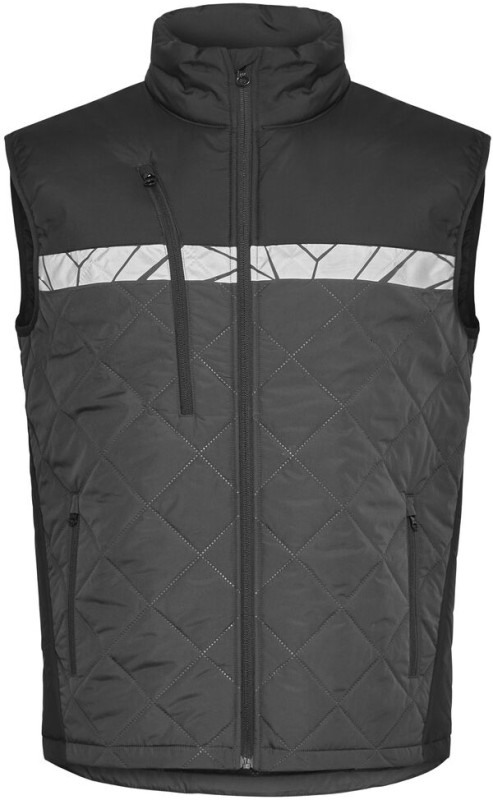 Kamizelka z lekkiego, bezszwowego materiału pikowanego w romby. Kieszeń na piersi po prawej stronie z zamkiem błyskawicznym oraz wewnętrznym uchwytem do przypięcia identyfikatora. Boczne kieszenie po obu stronach, również zapinane na zamek. Kieszonka na chip do prania w wewnętrznym lewym szwie bocznym.