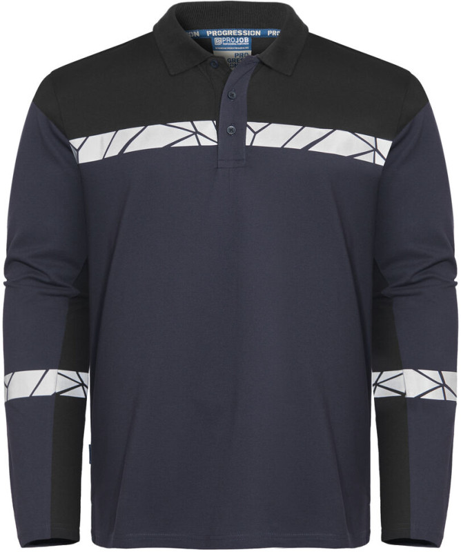 Koszulka polo z długim rękawem i z trzema guzikami z przodu. Kontrastowa taśma na karku zapewnia lepszą stabilność i utrzymanie kształtu. Rozcięcia po bokach. W wewnętrznym lewym szwie bocznym znajduje się kieszonka na chip do prania.