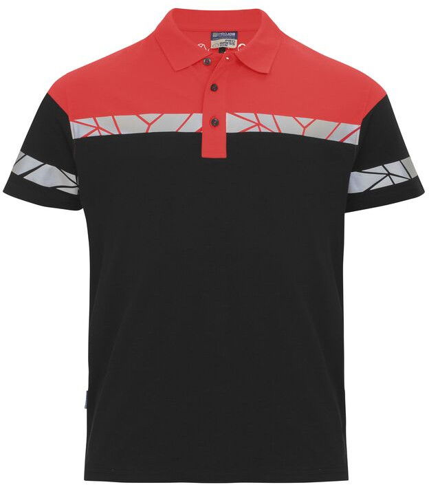 Koszulka polo z trzema guzikami z przodu. Kontrastowa taśma na karku zapewnia lepszą stabilność i utrzymanie kształtu. Rozcięcia po bokach. W wewnętrznym lewym szwie bocznym znajduje się kieszonka na chip do prania.