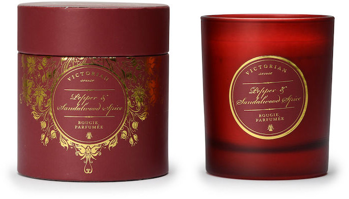 Świeca zapachowa o intrygującym zapachu drzewa sandałowego i pieprzu.